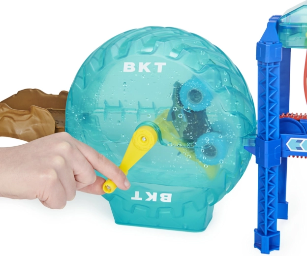 Rijd de wasstraat in, ga door de reinigingsborstels en spring in warm water om al het vuil van je truck te verwijderen. Wil je de auto weer vuil maken? Dompel hem dan in koud water en hij verandert van uiterlijk. De set bevat een metalen Megalodon-wagentje dat van kleur verandert. Geschikt vanaf 3 jaar.
