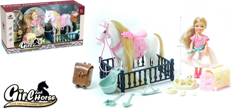 Deze boerenset brengt de wereld van boerderijdieren rechtstreeks naar de kinderkamer. Dankzij de combinatie van het paardje, de pop en het hondje kunnen kinderen hun eigen verhalen creëren, leren zorgen voor dieren en sociale vaardigheden ontwikkelen.