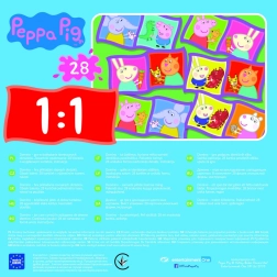 Domino Peppa Pig is een leuk en educatief spel voor kinderen dat geheugen, patroonherkenning en logisch denken ontwikkelt. Spelers proberen kaartjes met dezelfde afbeeldingen of hetzelfde aantal ogen aan te leggen. De winnaar is degene die als eerste al zijn kaartjes kwijt is of het spel afsluit. Dankzij de wisselende opstelling van de kaartjes biedt elk potje een nieuwe ervaring.