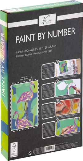Schilderen op nummer – de set bevat een gespannen canvas met afbeelding 21×29,7 cm, 1 premium penseel en 9 acrylverfkleuren.