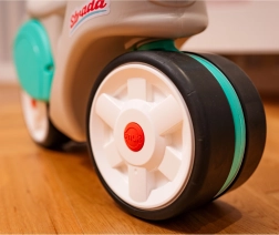 Brede wielen en een claxon op het stuur bieden extra stabiliteit en plezier tijdens het rijden.
