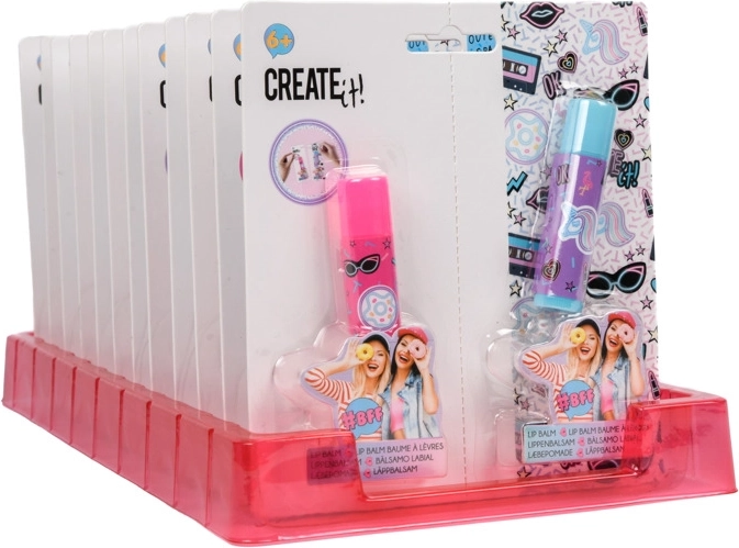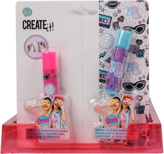 Verwen je lippen met zachte verzorging en een speelse look met de Create It! BFF lippenbalsem. De vrolijk geïllustreerde verpakking en speelse motieven maken het een perfecte accessoire voor in je handtas. Verkrijgbaar in twee kleuren – roze en blauw (de keuze is willekeurig). Hydrateert uitstekend en verzacht de lippen, ideaal voor dagelijks gebruik.