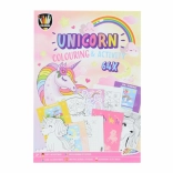 Boek vol met kleurplaten en activiteiten met een eenhoorn thema, dat plezier biedt met tekenen, kleuren en het plakken van stickers op 64 pagina's.