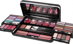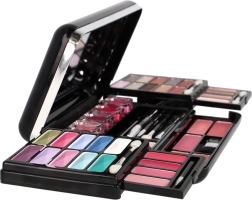 • Complete uitrusting in één: oogschaduws, blushes, glosses, poeders, potlood, tools.