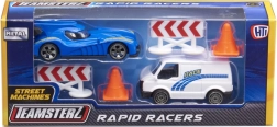 TEAMSTERZ RAPID RACERS – raceset met auto en ondersteunende bestelwagen met pylonen en barrières