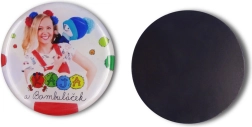 Stijlvolle harsmagneet met de populaire figuurtjes KÁJA A BAMBULÁČEK, ideaal voor op de koelkast, magneetbord of deurkozijn. Dankzij de compacte diameter van 45 mm past hij perfect in elk huishouden en elke kinderkamer.