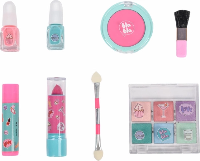 Make-upset Creat it Pink Turquoise – bevat 2 nagellakken, haar krijt, een grote kwast, lippenbalsem, lipstick, een kleine dubbelzijdige applicator, set van 6 glinsterende oogschaduws.