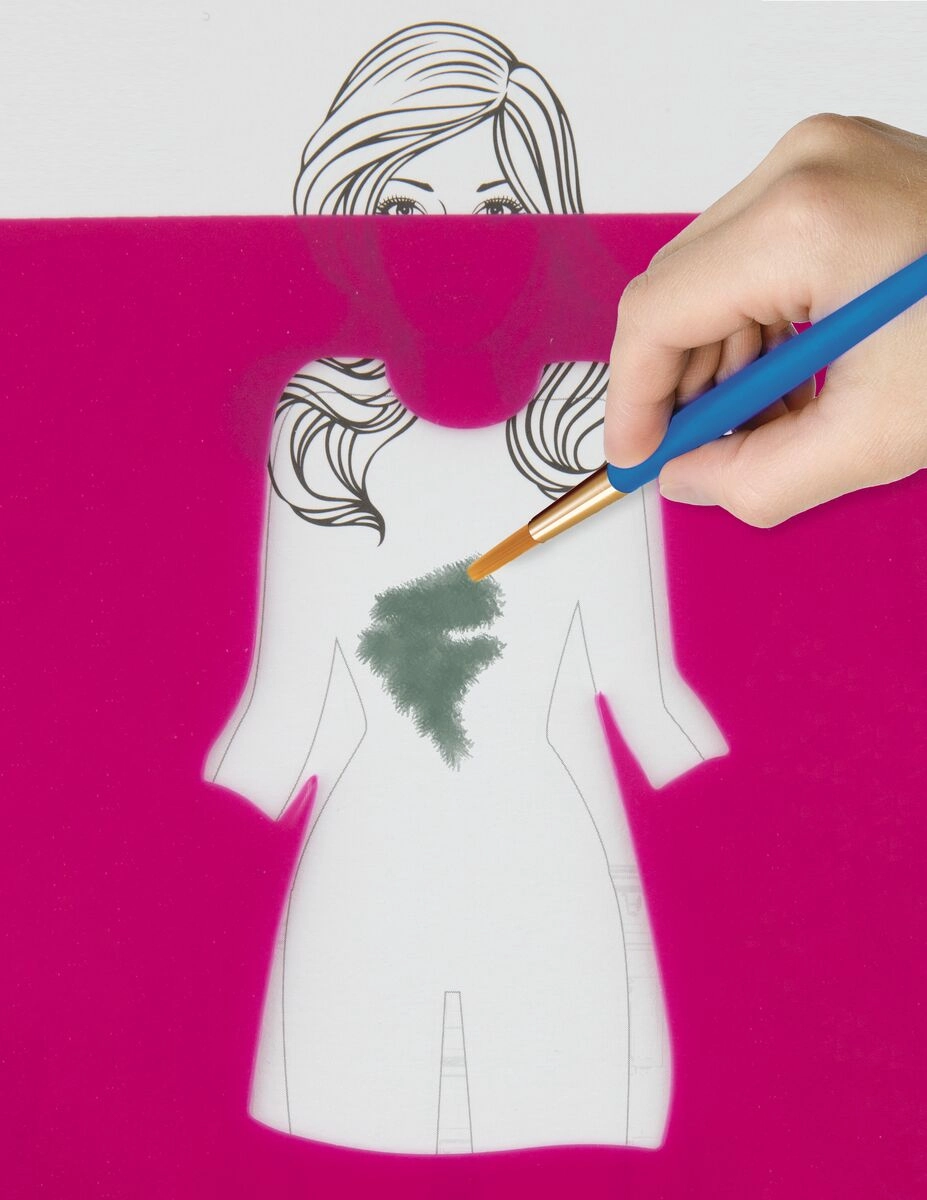 De set bevat 36 vellen met figuurvoorbeelden, 5 kunststof sjablonen met kleding- en accessoire-elementen en een ruime set stickers voor de definitieve versiering. Het praktische formaat is geschikt voor op reis en naar school, de pagina’s slaan makkelijk om en dankzij de sjablonen werk je intuïtief.