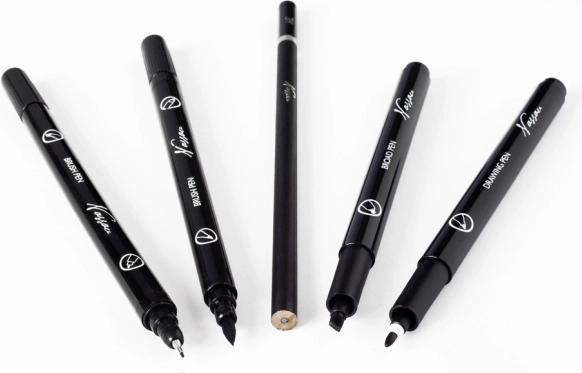 Set schilderpotloden – 5 stuks schilderpotloden van verschillende types – kalligrafisch type, potlood met ronde punt, penseeltype, fijn type en 3H-potlood.