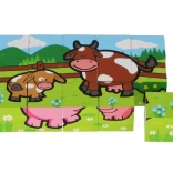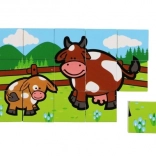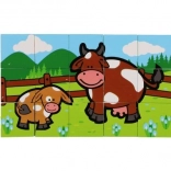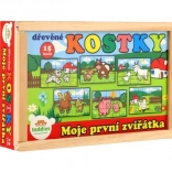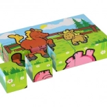 Houten blokken met kleurrijke afbeeldingen van verschillende huisdieren zijn een geweldig hulpmiddel voor de ontwikkeling van kinderen. Bij correct stapelen verschijnt een van de zes afbeeldingen, wat logisch denken en fantasie bij de kleintjes bevordert. Tijdens het bouwen en afbreken van torens begrijpen kinderen het principe van balans en de basis van oorzaak en gevolg.