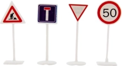De verpakking bevat een gevarieerde selectie borden – van Stop via hoofd- en zijweg, verboden en geboden, tot waarschuwingsdriehoeken en informatiesymbolen. Dankzij duurzaam plastic geschikt voor dagelijks spel en eenvoudig op te ruimen.