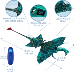 Ontdek het lichte en robuuste vliegende wezen uit de film AVATAR met RC-bediening op 2,4 GHz, dat met de vleugels klappert, luchtstunts uitvoert en een bereik heeft tot 60 meter. Dankzij de éénhandige controller is vliegen eenvoudig en veilig, ideaal voor buitenspeelplezier voor kinderen vanaf 8 jaar.
