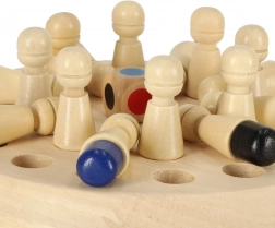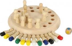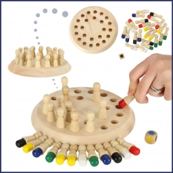 Ontdek een leuk houten spel dat het geheugen, de aandacht en het logisch denken traint. Gekleurde pinnetjes, een dobbelsteen met kleuren en een compacte ronde speelplaat maken het tot een ideale familie-activiteit. Gemaakt van natuurlijk hout met veilige, met water verdunbare verf – ook perfect voor liefhebbers van de Montessori-benadering.