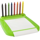 Bevat een groene plaat, 8 waskrijtjes en een papierrol van 5 m voor eindeloze tekenmogelijkheden.