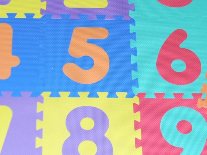 Praktisch foamkleed van koppelbare delen van 30 × 30 cm, ideaal voor de kinderkamer en speelhoek. De delen hebben een geribbelde antisliplaag voor betere stabiliteit en bevatten uitneembare cijferstukken, die leren en spelen tegelijk stimuleren.