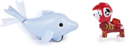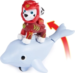 Bevestig Marshall op de vin op de rug van de dolfijn, duw de dolfijn naar voren