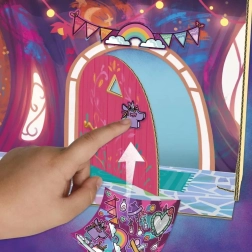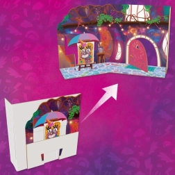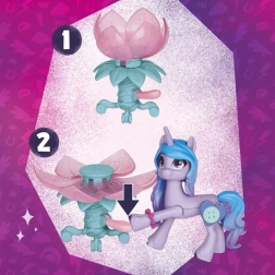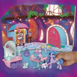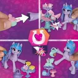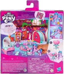 De set bevat een decoratieve papieren slaapkamerachtergrond, een uitklapbare tafel met Hoof to Heart-activatie en tal van accessoires die Izzy echt “in haar hoef” kan houden. Door de hoef op het pedaal te drukken verandert de bloem in een open tafel – ideaal voor een theekransje. Met de stickers kun je zowel de scène als de accessoires versieren.