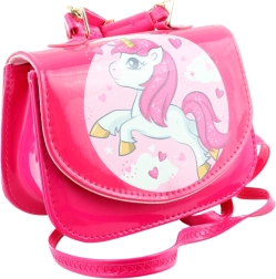 Deze roze handtas met een schattige eenhoorn is een perfecte accessoire voor dagelijks gebruik en speciale gelegenheden. Het glanzende oppervlak, gouden metalen details en speelse print maken er een stijlvol item van waar kinderen dol op zijn.