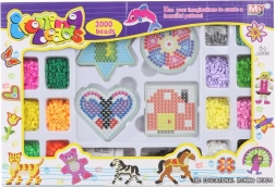 Grote set strijkkralen met circa 3000 kralen in verschillende kleuren. Afmetingen van de verpakking: ca. 39,5 x 27 x 3,5 cm. Leeftijd 6+.
