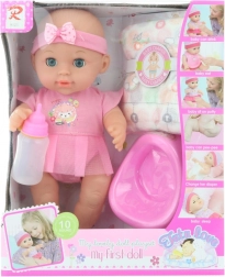 Deze interactieve baby zal alle kinderen die graag ouders naspelen blij maken. Na activatie van de batterijen geeft de baby geluidseffecten en dankzij de plasfunctie wordt het spel nog realistischer. De set bevat alles wat je nodig hebt voor de verzorging – van voeden tot verschonen.