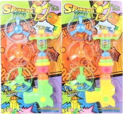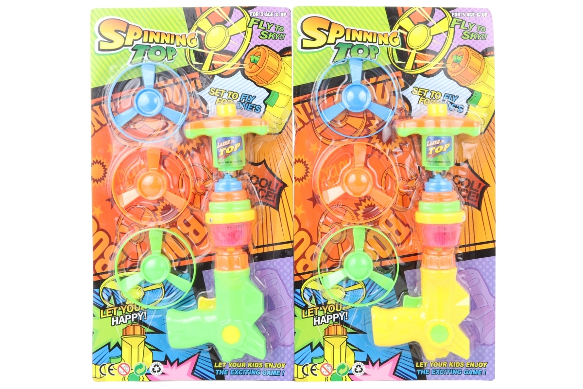 Breng de pret op gang met dit batterijpistool dat propellers de lucht in schiet en elke kleine liefhebber van beweging blij maakt. Dankzij de eenvoudige bediening leren kinderen het snel en genieten ze van veilig propellervliegen, zowel binnen als buiten. Ook inbegrepen is een kleurrijke tol voor extra speelplezier.