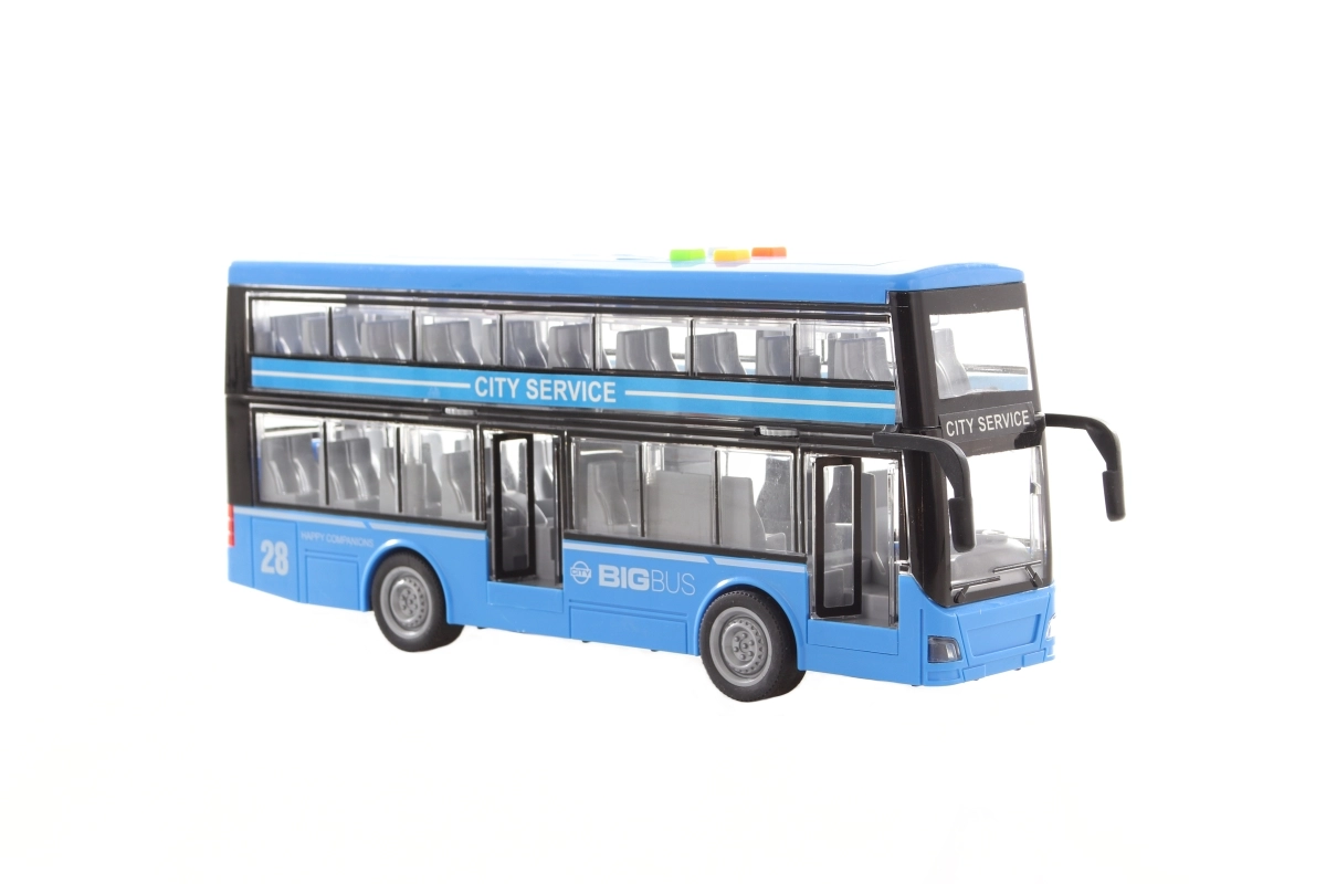 Deze blauwe dubbeldekker op batterijen maakt alle kleine voertuigfans blij. Dankzij de realistische geluiden voegt hij extra plezier en fantasie toe aan het spel. De robuuste kunststof uitvoering is ideaal voor dagelijks spelen.