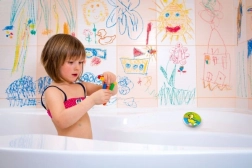 Met de badkleurpotloden Mijn eerste dieren wordt elk bad een avontuur. Kinderen kunnen zich verheugen op urenlang plezier door op het bad en de tegels te tekenen. De kleurpotloden zijn gemakkelijk afwasbaar, veilig en hypoallergeen.
