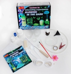Met deze set kan uw kleine experimentator de fascinerende eigenschappen van lichtgevend in het donker verkennen. De set bevat alle benodigde materialen, inclusief veiligheidsbril en gedetailleerde instructies in het Tsjechisch.