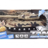 Een beige batterij-aangedreven tank voor kinderen zal kleine techniekfans verrassen. Dankzij het vliegwiel rijdt hij gemakkelijk weg, heeft compacte afmetingen en is geschikt voor kinderen vanaf 3 jaar.