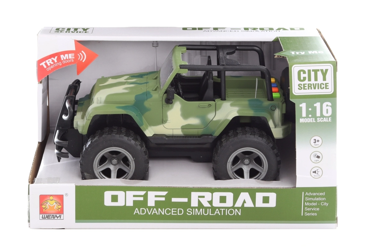 Een leuke batterij-aangedreven jeep voor kinderen vanaf 3 jaar biedt actievol spel met authentieke effecten. Voorzien van 4 autogeluiden, een duurzaam kunststof ontwerp en compacte afmetingen voor gemakkelijk meenemen en opbergen.