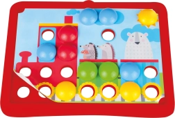 De robuuste kunststof uitvoering zorgt voor duurzaamheid en een lange levensduur. Kinderen kunnen de pinnetjes steeds opnieuw plaatsen en eigen patronen maken, waarbij ze de oog-handcoördinatie en concentratie trainen. De praktische verpakking is geschikt voor thuis en onderweg.