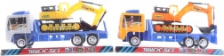 Deze plastic vrachtwagen met graafmachine zal alle kleine fans van bouwmachines blij maken. Dankzij de compacte afmetingen past hij gemakkelijk in een rugzak voor onderweg en is hij perfect voor spelen thuis of op de speelplaats. Spelen met de graafmachine stimuleert coördinatievaardigheden en ontwikkelt op een natuurlijke manier de fantasie.