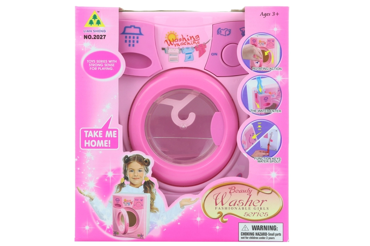 Schattige kinderwasmachine in roze met realistisch water- en geluids­spel. Geweldig voor kleine huishoudertjes vanaf 3 jaar, werkt op 2× AA-batterijen. Waterfunctie, compacte afmetingen en accessoires in de verpakking zorgen voor veel plezier en stimuleren de verbeelding.