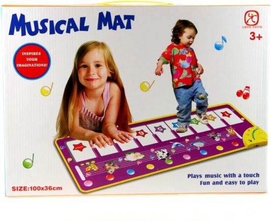 Interactief muzikaal tapijt voor kinderen vanaf 3 jaar dat spelenderwijs laat kennismaken met muziek en dierengeluiden. Raak de toetsen aan of stap erop en het tapijt speelt pianoklanken en dierengeluiden af. Met afmetingen van 98 × 36 cm biedt het volop ruimte om te spelen en stimuleert het de motoriek, het ritmegevoel en de auditieve waarneming. Werkt op 3× AA-batterijen (niet inbegrepen).