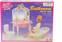 De set bevat een kaptafel met wastafel, een ruime badkuip en een losse wc. Kinderen kunnen allerlei scènes naspelen en zo hun verbeeldingskracht, sociale vaardigheden en fijne motoriek ontwikkelen.