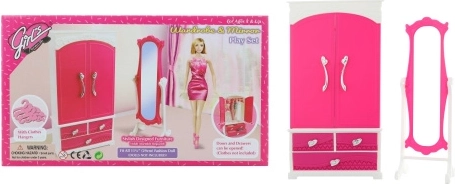 De GLORIE kledingkast met spiegel is een geweldige aanvulling op de wereld van poppen. Biedt openende deurtjes en lades voor het opbergen van jurkjes en accessoires en praktische hangers voor het ophangen van favoriete outfits. Dankzij de meegeleverde spiegel kunnen kinderen gemakkelijk combineren en nieuwe stijlvolle creaties uitproberen.
