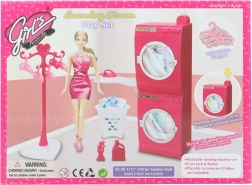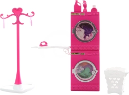 Geef kinderen een realistische speelervaring met de complete set Glorie wasserij. De set bevat een wasmachine die draait na het indrukken van de knop, een droger, een strijkplank, een kapstok, een wasmand en kledinghangers. Ideale aanvulling voor poppenhuizen vanaf 3 jaar.