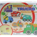 Verander knutselen in een bouwavontuur. Met deze set gieten kinderen magneten van gips in een mal met 6 bouwvoertuigmotieven, schilderen ze met de meegeleverde verf en maken er met de magneten vrolijke decoraties voor de koelkast of magneetbord van.