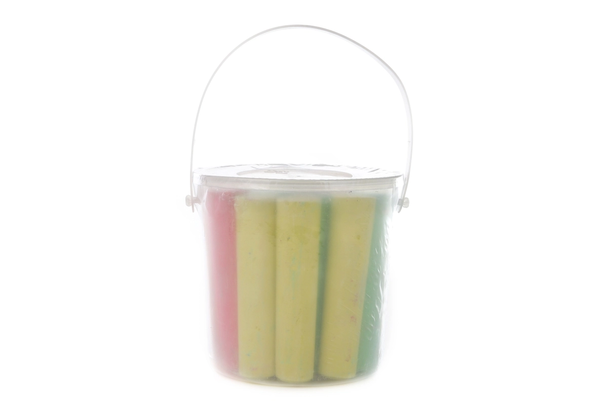 Ontdek het plezier van tekenen met deze praktische emmer krijt. De set bevat 15 stevige krijtjes met heldere kleuren die gemakkelijk aanbrengen en een duidelijke lijn achterlaten op stoep, asfalt en schoolbord. De emmer met eenvoudige sluiting en handvat zorgt voor handig meenemen en opbergen.