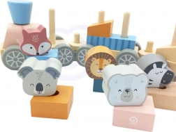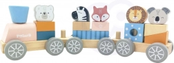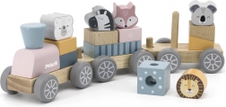 Dit speelgoed bevat een locomotief met drie aansluitende wagonnetjes die diverse combinaties van blokken versierd met dierfiguurtjes mogelijk maken. Tijdens het spelen ontwikkelen kinderen hun probleemoplossend vermogen en bewegingscoördinatie.