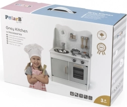 De POLARB Eco Grey kinderkeuken is een doordacht speeltoestel voor kleine koks dat plezier en vaardigheidsontwikkeling combineert. De robuuste houten uitvoering met niet-giftige verven in “poolse” tinten oogt elegant en is bestand tegen dagelijks spel. Kinderen kunnen maaltijden bereiden op de kookplaat, bakken in de oven en afwassen in de spoelbak – net als volwassenen.