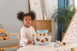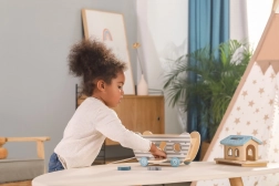 Hoogwaardig hout, afgeronde randen en aangename kleuren zorgen voor veilig spel, ook voor de allerkleinsten. Ideaal voor de kinderkamer en voor op reis.