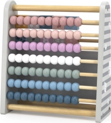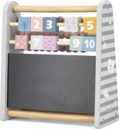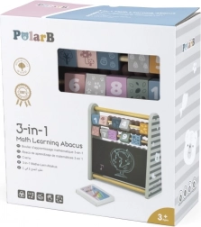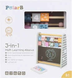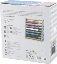 Dit multifunctionele houten 3-in-1 telraam verenigt leren en spelen. Met de gekleurde kralen oefenen kinderen het tellen, met de omklapblokjes met cijfers leren ze cijfers herkennen en eenvoudige relaties, en op het krijtbord kunnen ze hun eerste sommen en tekeningen schrijven of tekenen.