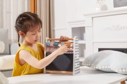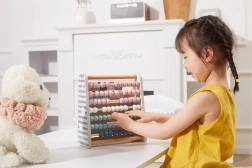 Gekleurde kralen en omklapblokjes met cijfers motiveren kinderen om de basis van wiskunde op een natuurlijke en speelse manier te ontdekken.