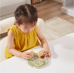 Dankzij het kwalitatieve hout en de gladde afwerking is het spel veilig voor kleine handjes. Kleurrijke illustraties nodigen uit tot herhaald spelen en helpen bij het herkennen van kleuren en vormen. Een uitstekende keuze als eerste educatief speeltje voor de kinderkamer.