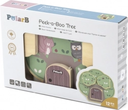Het houten Peek‑a‑Boo boomspel van POLARB is ontworpen voor speels ontdekken. Kinderen schuiven en draaien onderdelen, kloppen op deurtjes en vinden de schattige bewoners van de boom – het uiltje, de eekhoorn of de egel. Dit interactieve spel ontwikkelt op natuurlijke wijze de oog‑handcoördinatie en stimuleert nieuwsgierigheid.