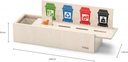 Dit educatieve speelgoed van VIGA is ideaal voor kinderen die de basis van afvalscheiding leren. Het wordt geleverd met een houten doos met openingen voor het inwerpen van kaartjes en een bord met verschillende afvalbakken. Bevat ook 50 houten kaartjes met afbeeldingen van afval en kleuren die overeenkomen met de recyclingcategorieën.