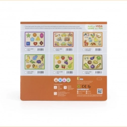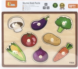 De houten groente-inlegpuzzel is een uitstekende keuze als eerste educatief speelgoed. Kinderen leren op een leuke manier vormen, kleuren en verschillende groentesoorten herkennen. De stevige houten plaat met uitsparingen en de glad afgewerkte stukjes zijn aangepast aan kleine kinderhanden.