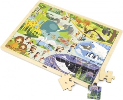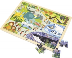 Deze schattige houten legpuzzel met dierentuinmotieven zal alle kleine puzzelliefhebbers blij maken. De kwalitatieve houten stukjes liggen prettig in de hand en zijn duurzaam, ook bij veelvuldig gebruik. Na het leggen ontstaat een prachtige afbeelding van ca. 40 × 30 cm die keer op keer gelegd kan worden.