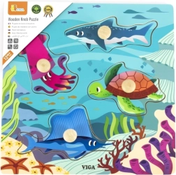 De houten puzzel met zeedierenmotief van het gerenommeerde merk Viga biedt een leuke en educatieve manier voor kinderen om de precisie van handbewegingen en vormherkenning te ontwikkelen. Het speelgoed is geschikt voor kinderen vanaf 12 maanden en helpt de coördinatie en het geheugen te verbeteren.